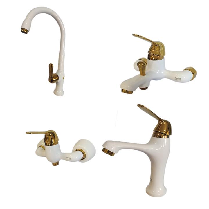 شیرآلات آویسا مدل نیکا سفید طلایی ست 4 تیکه دارای 5 سال گارانتی طلایی